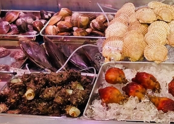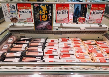 豊洲市場で仕入れた種類豊富な魚介類を対面販売を中心に展開。